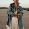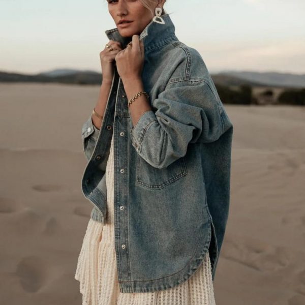 Collared Neckline Six Covered Button Closure Long Sleeves with Button Cuffs Six Button Closure on Front Two Front Pockets Loop on Back 100% Cotton Hand Wash Cold, Hang Dry A girl’s best friend is a good denim jacket and we’d like to introduce you to your next ride or die. The Eloise Denim Jacket in Blue will go with any outfit, for any occasion. Wear with a pair of light denim jeans for a monochromatic look. Model Info Height: 5’7″ Wearing Size: Small