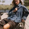Collared Neckline Pleated Detail Functioning Buttons Long Sleeves with Adjustable Button Cuffs Two Hand Pockets 88% Cotton; 12% Polyester Hand Wash Cold, Line Dry Model Info Height: 5’8″ Wearing Size: Small Small Measurements: Bust: 49″, Length: 23.5″