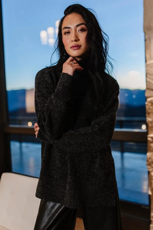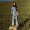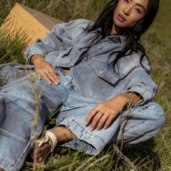 Collared Neck Long Sleeves with Button Cuffs Two Front Pockets with Button Closure Front Button Closure Raw Hem 80% Cotton, 20% Polyester Hand Wash Cold, Line Dry Belt sold separately Model Info Height: 5’8″ Wearing Size: Small Measurements: Bust: 48″, Length: 27.5″
