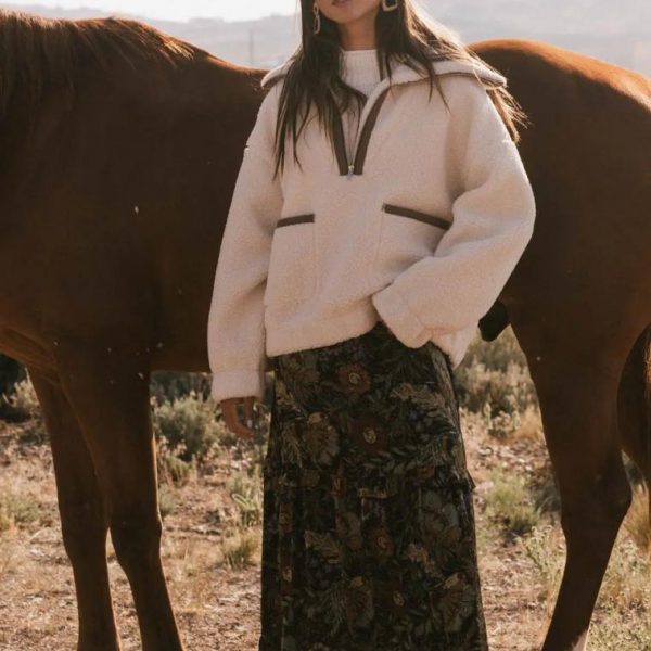 This is a Pre-Order Item, estimated ship date is 10/11/2024. For more information on preorders, click here. Collared Neckline Zipper Pullover Two Front Pockets Contrast Trim Long Sleeves Faux Fleece Slight Stretch Material Self, Lining: 100% Polyester Hand Wash Cold, Line Dry Model Info Height: 5’8″ Wearing Size: Small Small Measurements: Bust: 50″, Length: 24″