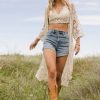 Floral Crocheted Pattern See Through Short Sleeves Slight Stretch Material Midi Length 100% Cotton Machine Wash Cold, Hang Dry Layering Pieces Sold Separately Model Info Height: 5’7″ Wearing Size: One-Size Measurements: Bust: Open, Waist: Open, Length: 43″