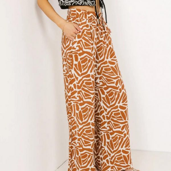 Elastic Waist Abstract Print Two Hand Pockets Wide Leg Fit Non-Stretch Material Slightly See Through 83% Rayon, 17% Nylon Hand Wash Cold, Flat Dry  We know you can’t wait to get your hands on the Annika Printed Pants. These bottoms are lightweight and comfy in material, but bold in color and pattern! Walk your walk in a pair of sneakers and a graphic tee. Model Info  Height: 5’8″  Wearing Size: Small