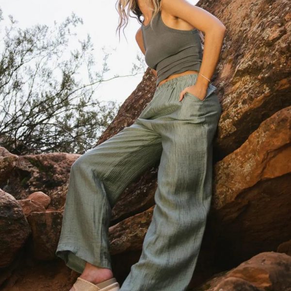 Elastic Waist Two Hand Pockets Lined Straight Leg Self: 45% Rayon, 37% Tencel, 18% Cotton; Lining: 100% Polyester Machine Wash Cold, Hang Dry Model Info Height: 5’7″ Wearing Size: X-Small