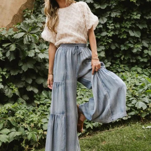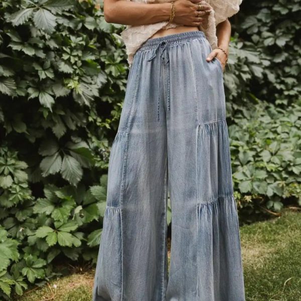 Gathered Side Elastic Waist Functional Drawstring Two Deep Hand Pockets Non Stretch Material Wide Leg Fit 100% Lyocell Hand Wash Cold, Hang Dry  Model Info Height: 5’7″ Wearing Size: Small