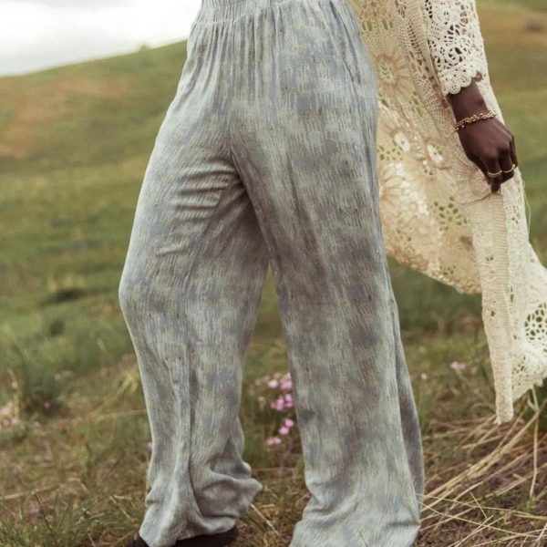 Elastic Waist Abstract Print Two Hand Pockets Wide Leg Non-Stretch Material Slightly See Through 100% Rayon Machine Wash Cold, Flat Dry The Verity Printed Pants in Blue are the perfect piece for the warmer months. These flowy bottoms are comfortable enough to wear all day. Style with a simple essentials top and some sandals. Model Info Height: 5’5″ Wearing Size: Small