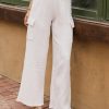 Elastic Waist Two Side Cargo Pockets Wide Leg Fit Non Stretch Material Slightly See Through 100% Cotton Hand Wash Cold, Hang Dry Matching Pieces Sold Separately Model Info Height: 5’7″ Wearing Size: X-Small