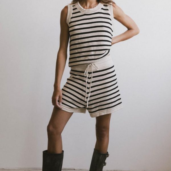 Striped Pattern Contrast Stitch Waistband Fully Lined Waist Tie Detail Slightly See Through Stretch Knit Material Self: 100% Cotton Lining: 100% Polyester Hand Wash Cold, Line Dry Matching Pieces Sold Separately Model Info Height: 5’8″ Wearing Size: Small