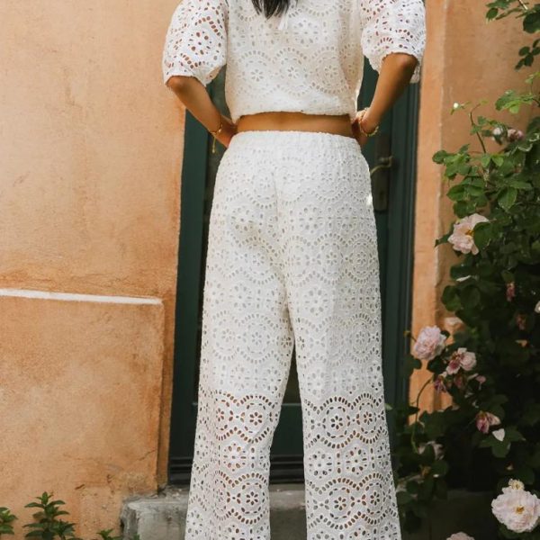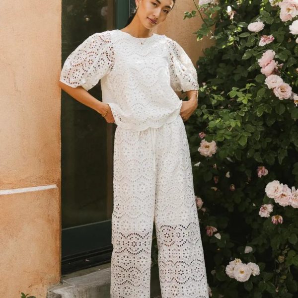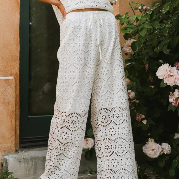 Eyelet Lace Material Shorts Lining Elastic Waist Functional Drawstring Scalloped Hem Self: 100% Cotton Lining: 100% Rayon Hand Wash Cold, Line Dry Matching Pieces Sold Separately  Model Info Height: 5’8″ Wearing Size: Small  Fit: True to Size