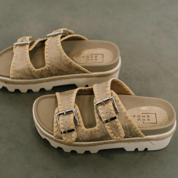 Round Toe Woven Material Adjustable Buckled Straps Padded Insole Slip on Style Platform Height: 2.5″ This Shoe Fits True to Size **For more specific information on the product, please feel free to email us webteam@bohme
