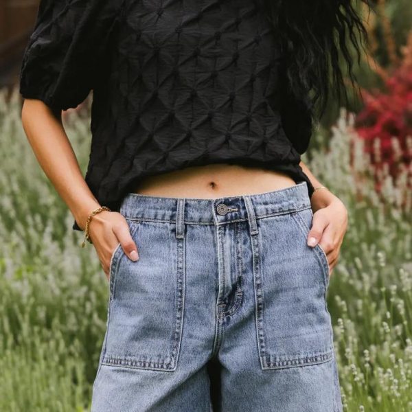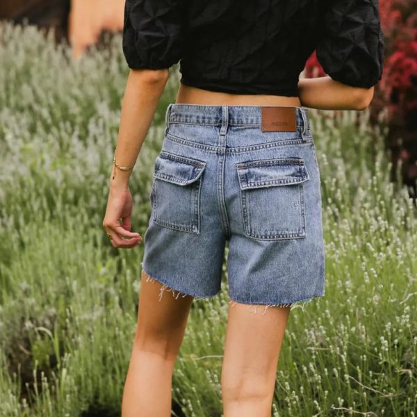 High Rise Dad Short Front Rectangular Patch Pockets Back Flap Pockets Zipper and Button Closure Raw Hem Non Stretch Denim Material 100% Cotton Machine Wash Cold, Tumble Dry Low The Gracey High Rise Dad Shorts are sure to be the shorts of the season. These casual bottoms have a trendy 5″ inseam, keeping up with what’s hot right now. Pair these shorts with a boxy-fit shirt and your favorite clogs for a laid back weekender look. Model Info Height: 5’7″ Wearing Size: X-Small