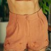 High Rise Button and Zipper Closure Two Hand Pockets Non Stretch Material Runs small Fully Lined Embroidered Flowers and Lace Hem Self: 70% Rayon, 30% Linen; Lining: 100% Rayon Wash Separately, Professional Dry Clean Recommended MATCHING PIECES SOLD SEPARATELY Model Info: Height: 5’7″ Wearing Size: X-Small