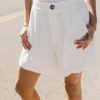 Elastic Back Waist Two Hand Pockets High Rise Lined Button and Zipper Closure 70% Rayon, 30% Linen Hand Wash Cold, Lay Flat to Dry  Model Info  Height: 5’7″  Wearing Size: Small  Measurements: Waist: 26″- 28″ , Rise: 13″ , Inseam: 4″