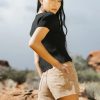 High Rise Raw Hem Two Hand Pockets Two Back Pockets Button and Zipper Closure 94% Cotton, 4% Polyester, 2% Spandex Machine Wash Cold, Tumble Dry Low Model Info Height: 5’7″ Wearing Size: X-Small