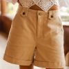 High Rise Non-Stretch Waist Belt Loops Button and Zipper Closure Two Front Hand Pockets Rolled Cuffs- Cant be Unrolled Stretch Material Two Back Pockets 97% Cotton, 3% Spandex Hand Wash Cold, Tumble Dry Low Model Info Height: 5’7″ Wearing Size: Small X-Small Measurements: Waist 28″, Rise: 11″, Inseam: 5″ **For more specific information on the product, please feel free to email us at webteam@bohme