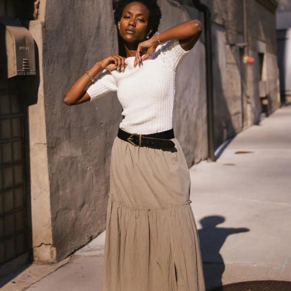 Elastic Waist Drawstring Mini Skirt Lining 17.25″ Front Slit Sheer Non-Stretch Material Self: 100% Cotton Lining: 100% Rayon Hand Wash Cold, Hang Dry Belt sold separately   We heard you’re looking to make some spring wardrobe updates, so we’d like you to meet the Aspen Midi Skirt in Olive. The flowy tiers and front slit make this skirt trendy, and a breeze to style. Try it with a pair of platform sandals and a quilted tote. Model Info  Height: 5’8″  Wearing Size: Small