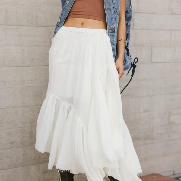 Elastic Waistband Raw and Distressed Hem Voluminous Tiered Skirt Asymmetrical Layers Mini Skirt Lining Slightly See Through Non Stretch Material Self: 65% Polyester, 35% Cotton Lining: 100% Cotton Model Info Height: 5’8″ Wearing Size: X-Small