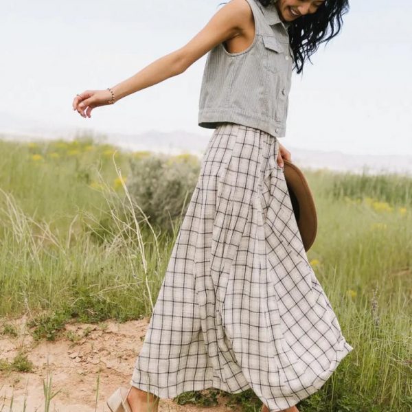 Elastic Waistband Gathered Detail Under Waist Misaligned Plaid Panels Slightly See Through 44% Cotton, 42% Viscose, 14% Linen Hand Wash Cold, Line Dry  Excuse us while we gush over the Avril Plaid Maxi Skirt. This skirt is down right beautiful and we know you agree. Pair this piece with a simple tank and some boots to keep it the focal point and let it do its thing!  Model Info  Height: 5’8″  Wearing Size: X-Small