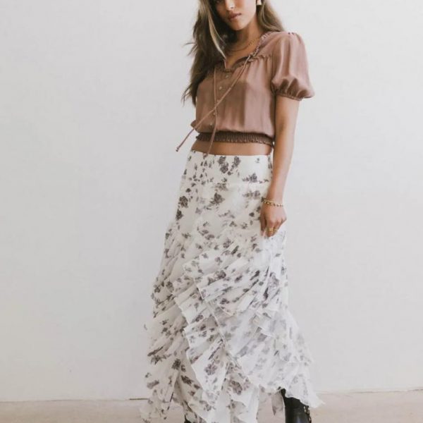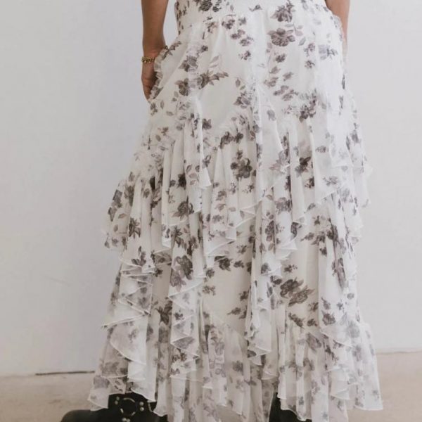 Emerson Ruffled Maxi Skirt in White…