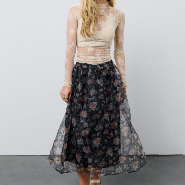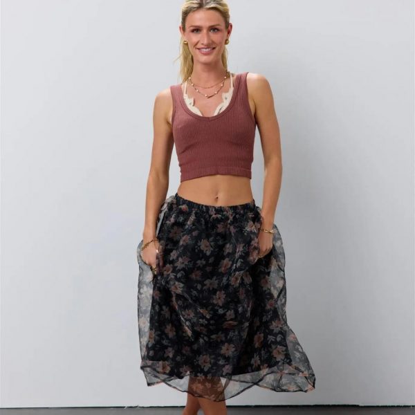 Elastic Waist Lined Non Stretch Floral Print 100% Polyester Hand Wash Cold, Line Dry Model Info Height: 5’7″ Wearing Size: Small