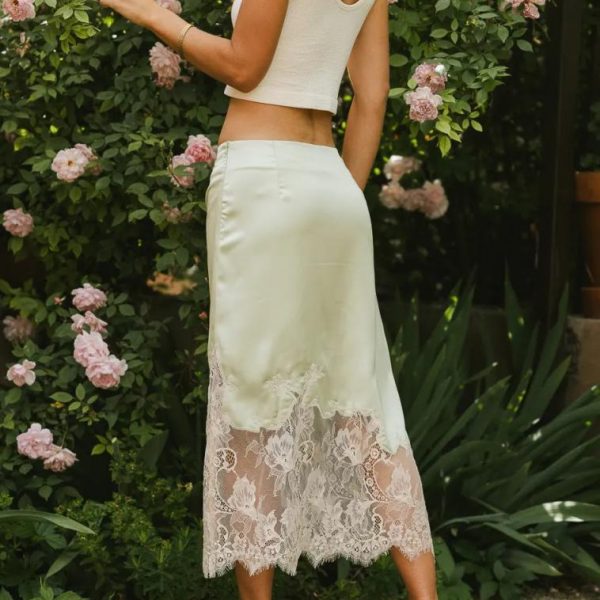 Zipper on Wearer’s Left Asymmetrical Lace Hem Seam Mini Skirt Liner Self: 100% Polyester Contrast: 100% Cotton Lining: 100% Polyester Hand Wash Cold, Line Dry A striking green shade and elegant lace come together to create the Frankie Asymmetrical Skirt in Lime. This skirt is perfect for days out with the girls, and nights out with your boo. Simple tanks are our favorite match. Model Info Height: 5’7″ Wearing Size: Small Fit: True to size