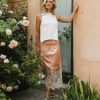 Zipper on Wearer’s Left Asymmetrical Lace Hem Seam Mini Skirt Liner Self: 100% Polyester Contrast: 100% Cotton Lining: 100% Polyester Hand Wash Cold, Line Dry Weddings and formal dinners just got a whole lot better with the Frankie Asymmetrical Skirt in Peach as your plus one. Light colored blouses are the perfect addition to any outfit this skirt starts. Model Info Height: 5’7″ Wearing Size: Small Fit: True to size
