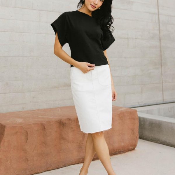 Zipper and Button Closure  Two Hand, Two Back Pockets  6.5″ Slit on Back  Stretchy Denim  Raw, Distressed Hem Slightly See Through  70% Cotton, 24% Lyocell, 5% Polyester, 1% Spandex  Machine Wash Cold, Tumble Dry Low  Model Info  Height: 5’8″  Wearing Size: X-Small