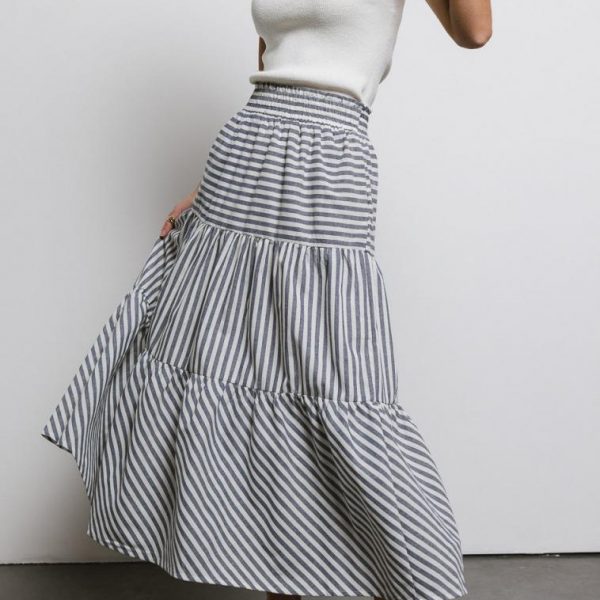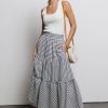 Thick Elastic Waistband Two Hand Pockets Tiered Skirt Non Stretch Woven Material Lined Self: 65% Cotton, 35% Polyester; Lining: 100% Rayon Hand Wash Cold, Lay Flat to Dry Model Info Height: 5’7” Wearing Size: Small