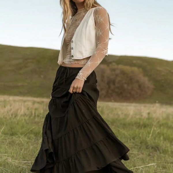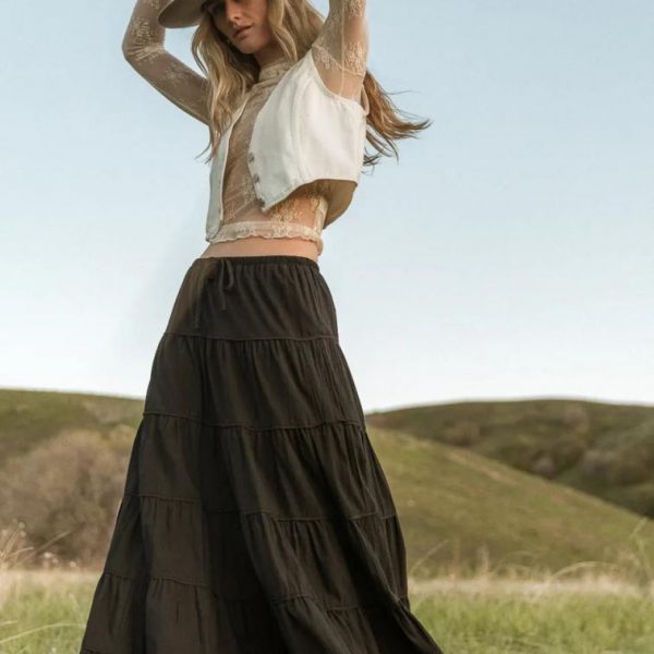 Elastic Waistband Functional Waist Tie Six Tiered Skirt Gathering Fully Lined Self: 100% Cotton; Lining: 100% Polyester Machine Wash Cold, Line Dry Who doesn’t love a black skirt? They are easy to style, and always look good. The Kenzington Tiered Skirt in Black is no different. This skirt is sure to be a fixture in your closet. Dress it up with some heels, or make it casual with some sneakers, your options are limitless! Model Info Height: 5’7″ Wearing Size: Small