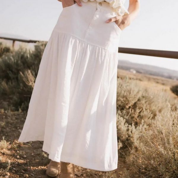 Zipper and Button Closure Two Hand Pockets Denim Hip Gathered and Flowy Body Non Stretch Material Fully Lined 55% Cotton, 45% Rayon Hand Wash Cold, Hang Dry Model Info Height: 5’9″ Wearing Size: Small