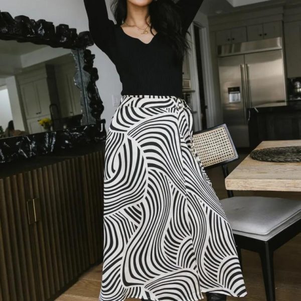 Faux Wrap Skirt with Buckle Tie Back Elastic Waist Back Zipper Lined 100% Polyester Hand Wash Cold, Hang Dry  Model Info  Height: 5’8″  Wearing Size: Small
