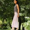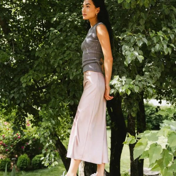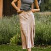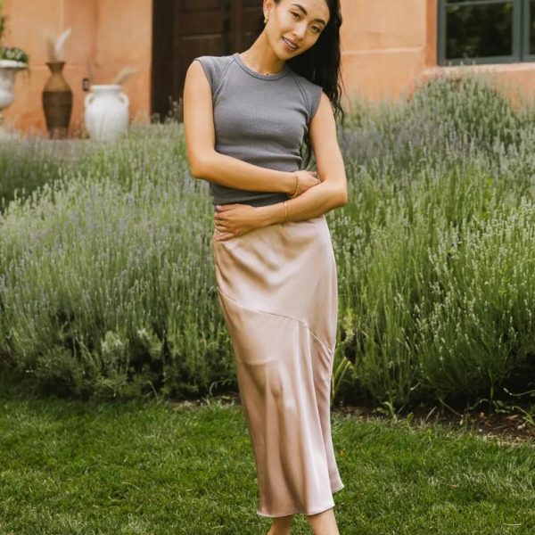 Elastic Waist Midi Length Mini Skirt Lining Asymmetrical Seam Detail Satin Look Self: 98% Polyester, 2% Spandex Lining: 100% Polyester The Zada Midi Skirt in Blush couldn’t be more fun or flirty. This skirt has a habit of keeping us on our toes as it can be worn casually or formally. Grab your favorite blouse and nude heel for a dinner date. Model Info Height: 5’8″ Wearing Size: X-Small Fit: True To Size