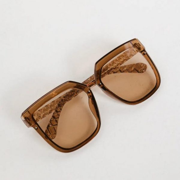 Clear Brown Frames Light Brown Lenses Textured Diamond Pattern Temples UV400 Protection Product :Frame Width: 5.5″Lens Height: 2″Lens Width: 2.5″ **For more specific information on the product, please feel free to email us at webteam@bohme