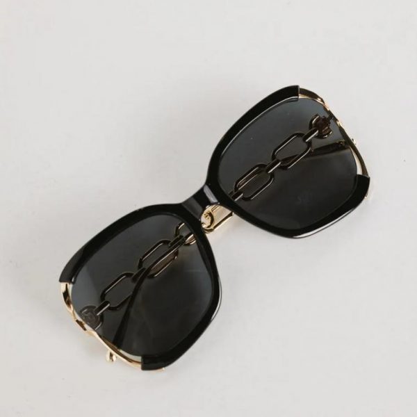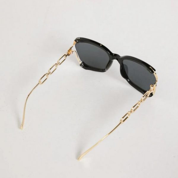 Black Frames with Gold Detail Black Lenses Chain Link Temples UV400 Protection  Product :Frame Width: 5.5″Lens Height:   2.25″Lens Width:   2.5″ **For more specific information on the product, please feel free to email us at webteam@bohme