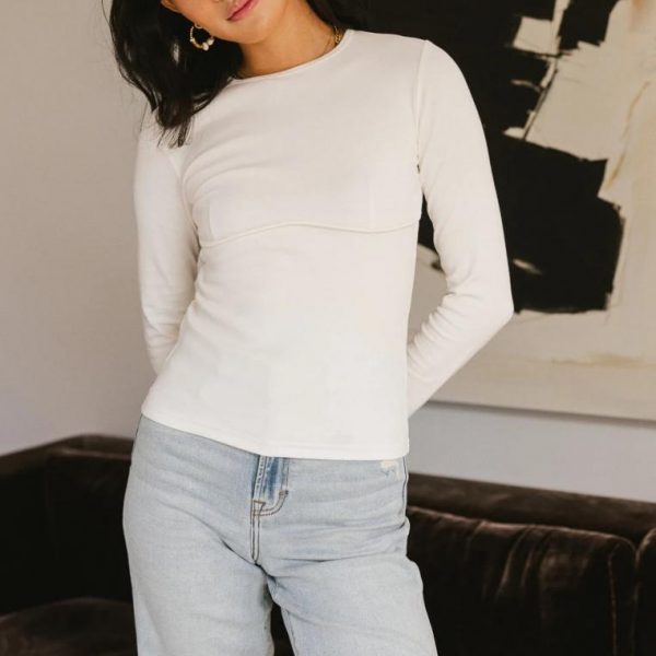 Alexa Long Sleeve Top in Ivory…