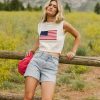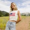 American Flag Graphic Ribbed Crew Neckline Ribbed Bottom Hem Sleeveless Tank Strap Cropped Fit Stretch Material 55% Acrylic, 45% Cotton Hand Wash Cold, Hang Dry Model Info Height: 5’7″ Wearing Size: Small