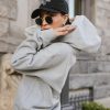 Hoodie Long Sleeves Front Pocket Self: 80% Cotton, 20% Polyester; Contrast: 60% Cotton, 38% Polyester, 2% Spandex Hand Wash Cold, Dry Flat  Model Info  Height: 5’8″  Wearing Size: Small