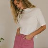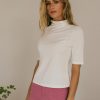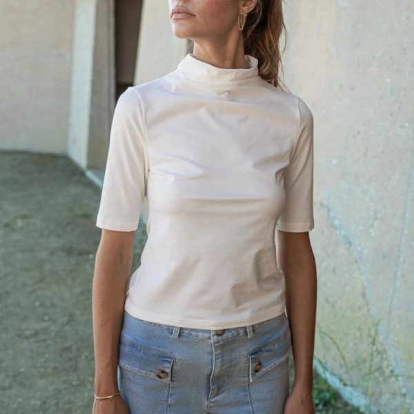 Mock Neckline Short Sleeves Stretch Material 100% Cotton Hand Wash Cold, Hang Dry Model Info Height: 5’7″ Wearing Size: X-Small