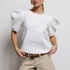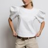 Round Neckline Short Puff Sleeves with Pleat Back Keyhole Closure Seam Slight Stretch Material 80% Cotton, 15% Polyester, 2% Spandex Hand Wash Cold, Line Dry The Aubree Denim Top in Cream is about to be your denim go-to. We are loving the puff sleeves and we know you will, too. Keep thigs casual by styling this top with some simple shorts and low-profile sneakers. Model Info Height: 5’8” Wearing Size: Small