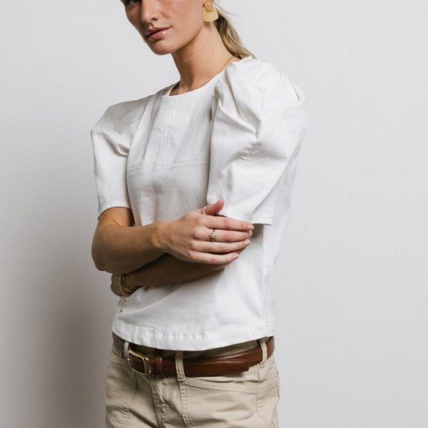 Round Neckline Short Puff Sleeves with Pleat Back Keyhole Closure Seam Slight Stretch Material 80% Cotton, 15% Polyester, 2% Spandex Hand Wash Cold, Line Dry The Aubree Denim Top in Cream is about to be your denim go-to. We are loving the puff sleeves and we know you will, too. Keep thigs casual by styling this top with some simple shorts and low-profile sneakers. Model Info Height: 5’8” Wearing Size: Small
