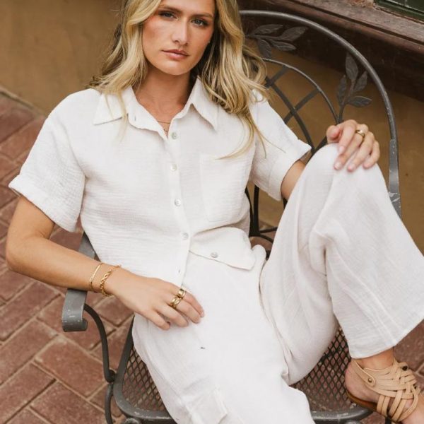 Collared Neckline Six Button Closure Chest Pocket Cropped Fit Short Rolled Sleeves Slightly See Through Minimal Stretch 100% Cotton Hand Wash Cold, Flat Dry Matching Pieces Sold Separately  Model Info Height: 5’7″ Wearing Size: X-Small
