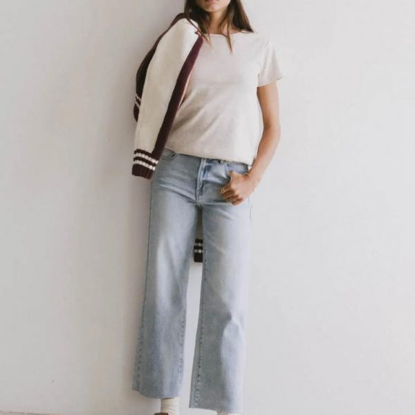 Ribbed Crew Neck Short Sleeves Stretch Knit Material 100% Cotton Hand Wash Cold, Flat Dry Model Info Height: 5’8″ Wearing Size: Small