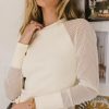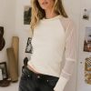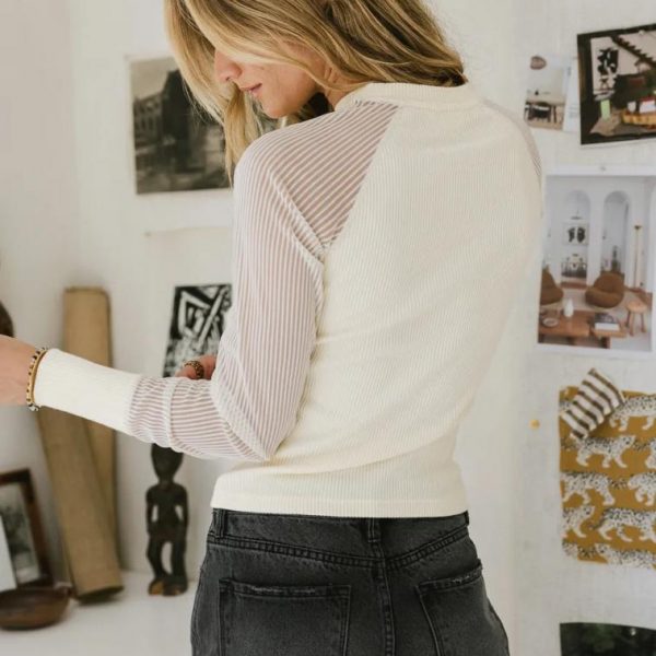 Round Neckline Long Ribbed Mesh Sleeves Stretch Ribbed Material Self: 96.9% Cotton, 3.1% Spandex; Contrast: 100% Polyester Machine Wash Cold, Hang or Tumble Dry Low  Model Info  Height: 5’7″  Wearing Size: X-Small