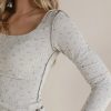 TOPS | Bohme Womens Chloe Floral Ribbed Top in Grey