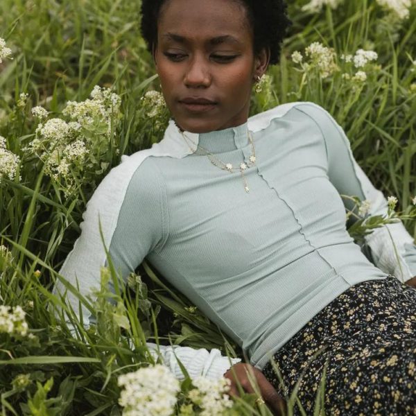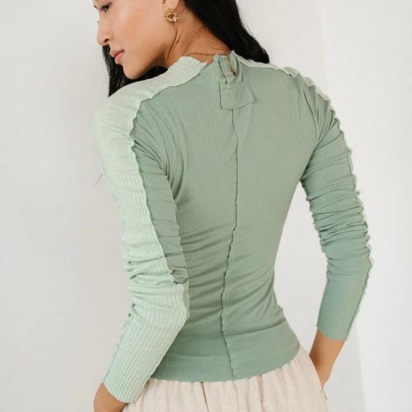 Mock Neckline Extra Long Sleeves Exposed Seam Sleeve Detail Color Contrast Sleeves  Stretch Ribbed Knit Material Exposed Seam Down Middle of Front and Back Tight Fitted Top 50% Cotton, 45% Polyester, 5% Spandex Machine Wash Cold, Hang or Tumble Dry Low  Model Info  Height: 5’8″  Wearing Size: X-Small  Measurements: Bust: 24″, Length: 22″  **For more specific information on the product, please feel free to email us at webteam@ bohme
