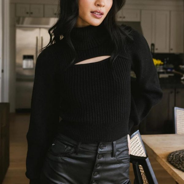 Be the first to review “TOPS | Bohme Womens Cut Out Turtleneck Sweater in Black” Cancel reply