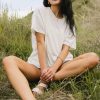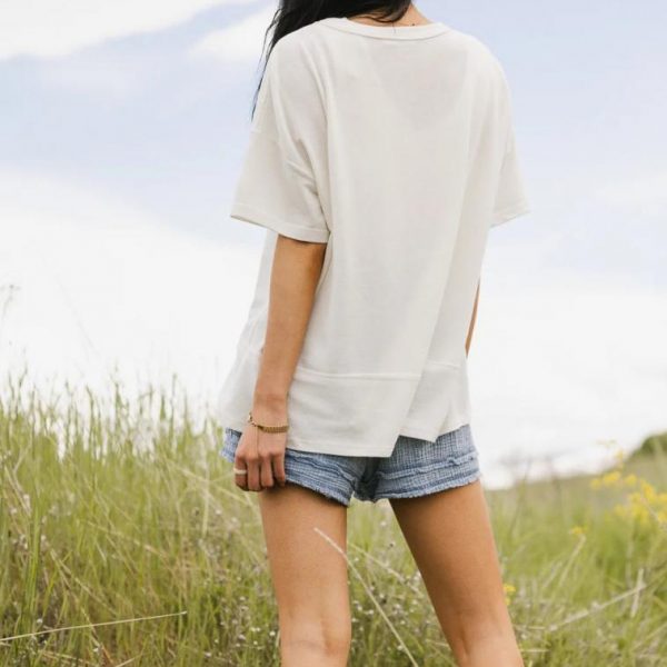 Crew Neckline Raw Seam Reverse Fold Short Sleeves Paneling Detail Hem Slits Reverse Hemline Slightly See Through 95% Polyester, 5% Spandex Hand Wash Cold, Hang Dry If you’re lost, you can look, and you will find the Cyndi Reverse Fold Top. We’re impressed by neutrals time after time, and this top is no different. Style it with a pair of distressed denim shorts and some sandals for the perfect outfit at last. Model Info Height: 5’8″ Wearing Size: Small