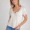 Square Neckline Short Sleeves Ditsy Floral Front Button Closure Stretch Knit Material Pointelle 100% Cotton Hand Wash Cold, Hang Dry Model Info Height: 5’7″ Wearing Size: Small