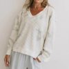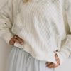 Ribbed V Neckline Long Sleeves Drop Shoulder Two Hem Slits Exposed, Distressed Seams Boxy, Oversized Fit Slightly Stretchy Waffle Knit 90% Cotton, 10% Polyester Machine Wash Cold, Tumble Dry Low  Model Info Height: 5’9″ Wearing Size: X-Small