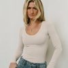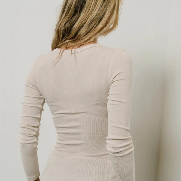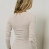 V-Neck Long Sleeves Stretch Ribbed Material 92% Rayon, 8% Spandex Machine Wash Cold, Tumble Dry Low Model Info Height: 5’7″ Wearing Size: X-Small