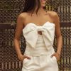 Sleeveless Big Front Bow Back Smocked Detail Front Cut Out Detail Left Side Zipper Closure Cropped Fit Front Boning Detail Lined Non Stretch Material 100% Polyester Hand Wash Cold, Hang Dry  Model Info  Height: 5’7″  Wearing Size: Small